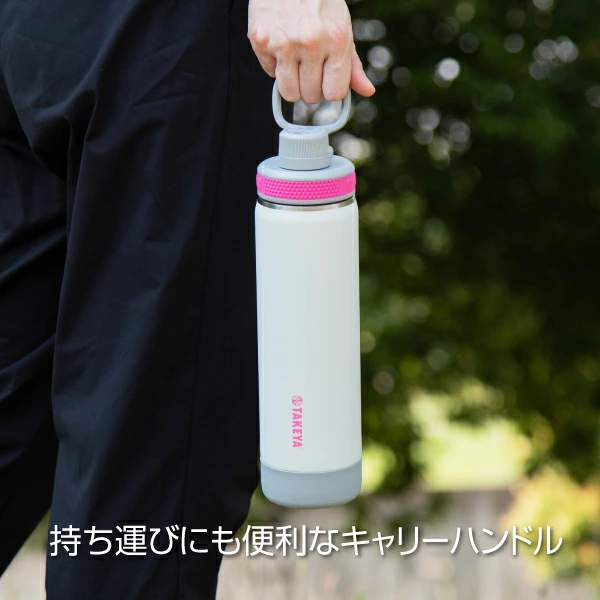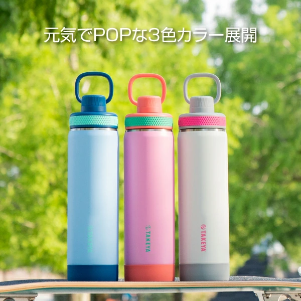 POPな配色とスリムな本体。ちょっとした運動や日常使いにちょうど良いサイズで1年中使えて、女性やお子さんにも持ちやすいボトルです。