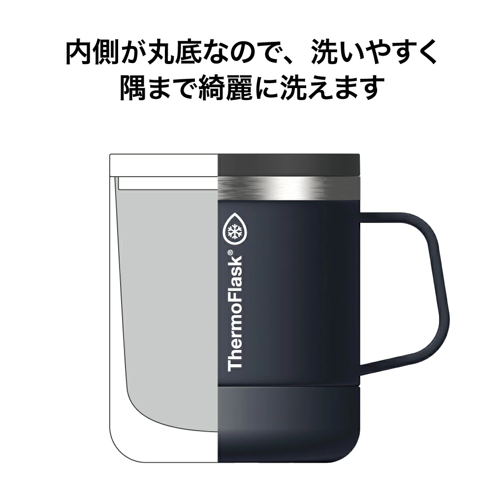 ステンレス真空二重構造で熱を逃がしにくい。お家でも使いやすいマグカップ